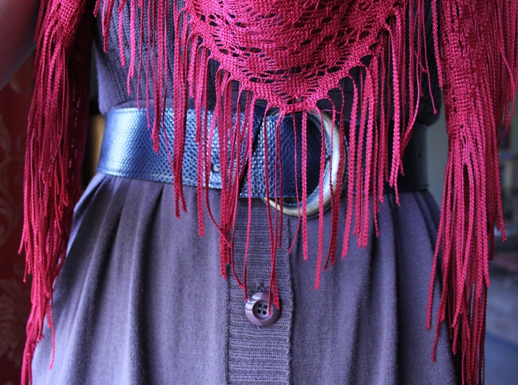 The scarf is actually a crochet poncho...it's from a friend's closet clean out. I thought it'd make a cute scarf so I took it when she let me look through the stuff she was getting rid of.