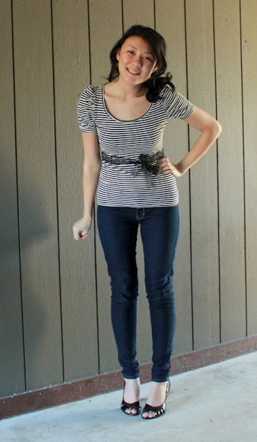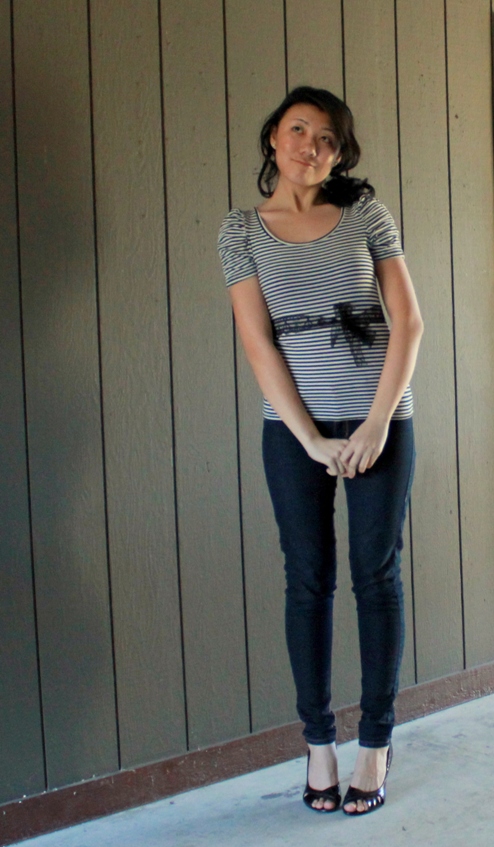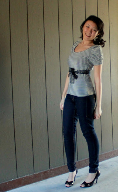 And here's Day 11. I posted sometime ago about doing a DIY with this shirt (here), but I never got around to sewing it on. I started to second guess myself because I liked it plain as well. And then I found another way to wear it: