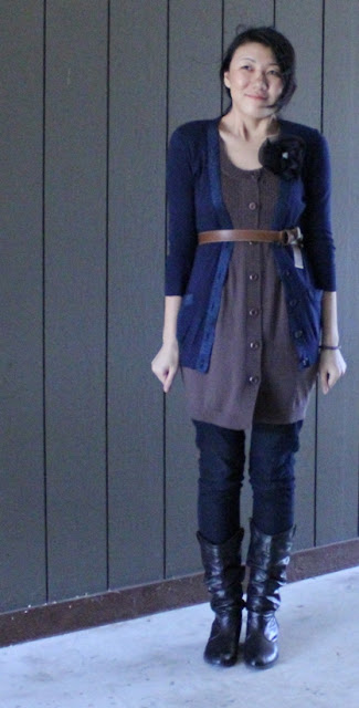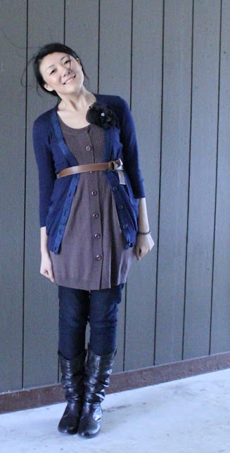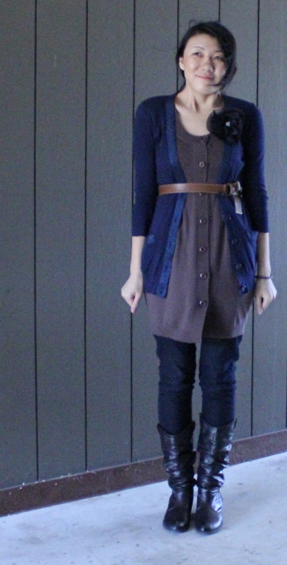 I noticed the excessive presence of buttons in my outfit today, as a result of wearing a button down cardigan over a button down sweater dress. I also questioned my judgment in putting a sweater over a sweater dress, but it all worked out pretty well!