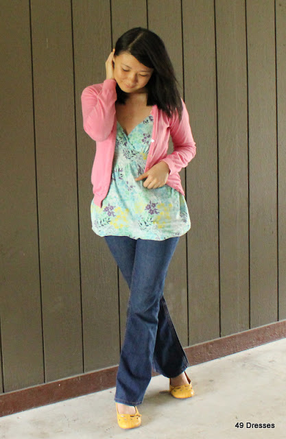 I looked like a kindergarten teacher today. Apparently that's what happens when I try to combine "bright and happy" with "ridiculously mismatched colors" and "I'm sick so I want to be comfy".