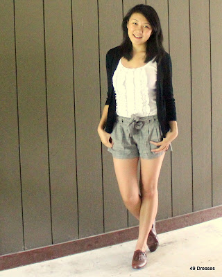See that shirt? I made it yesterday, after going to the $2 Tank Top sale at Old Navy and fetching one of those white tanks. I cut up an XL white t-shirt I had lying around (I got it for free at an event), and used it to make ruffles.