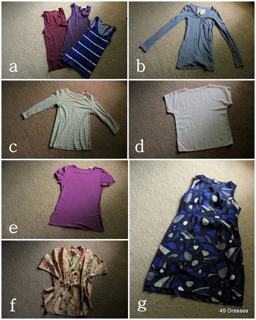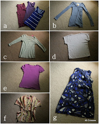 f. Butterfly sleeve styled top. Sleeves are a little ridiculous, but I loved the fabric and I needed more stuff to fill the bag, so I figured I'd alter it a bit!