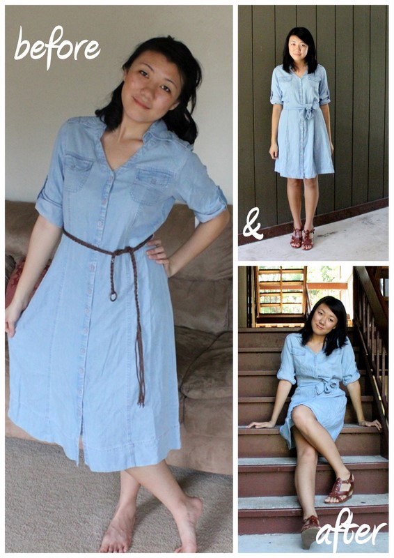 I purchased this brand new chambray dress from Goodwill for $4 a few months ago...and yesterday I finally mustered up enough motivation to alter it.